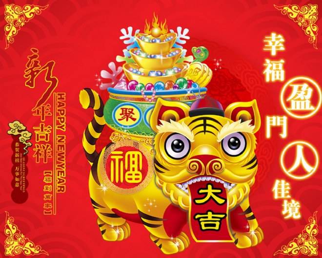◎虎年祝你财源滚滚,发得象肥虎,身体壮的象头虎,爱情甜的象奶虎,好运多的象虎毛,事业蒸蒸象大虎!