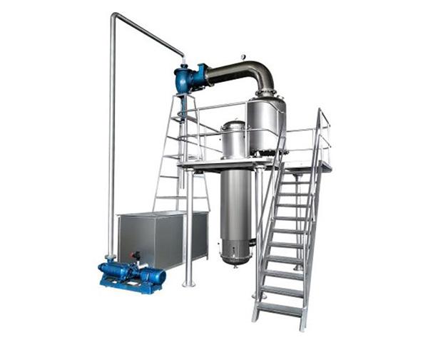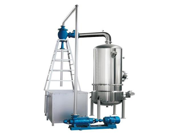 本设备为单效间隙式真空浓缩设备,由器体、盘管加热器、分离器、水力喷射器、 操作平台及多级泵等组成。 适用于热敏性物料(如果汁、蔬菜汁、药液等流动性的物料)在真空低温浓缩。